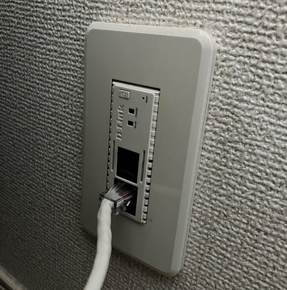 部屋の壁に埋め込みのAPが付いていて、そこに直接接続するか、LANケーブルを伸ばして機器を接続するかで使用します。
